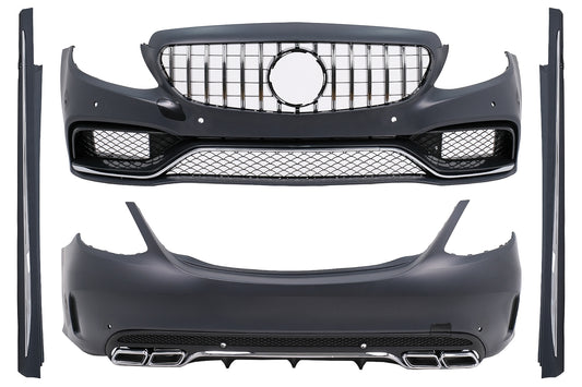 Bodykit für Mercedes C-Klasse W205 Limousine 14–18 Stoßstangen Seitenschweller Endrohre