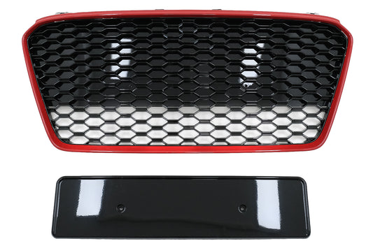 Kühlergrill für Audi R8 42 1 Generation Facelift 13-15 RS Look Glänzend schwarz Rot