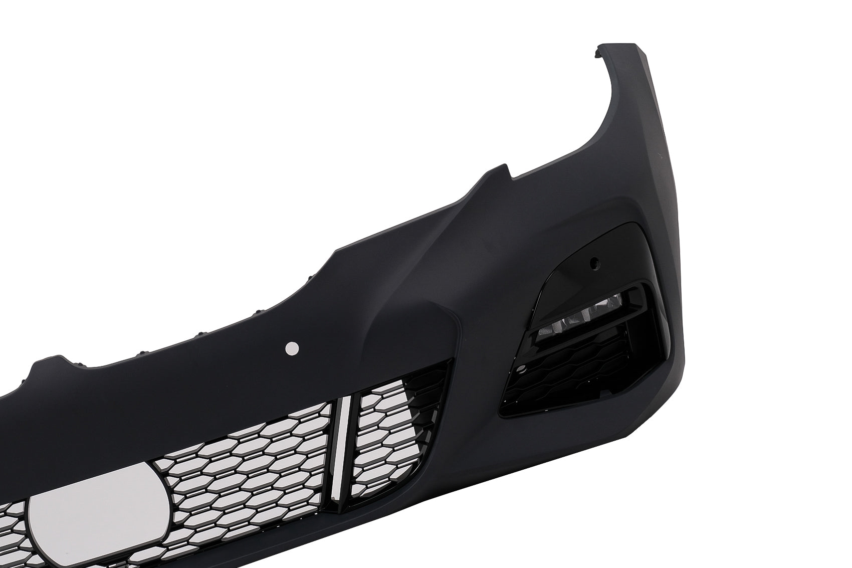 Frontstoßstange Vordere Stoßstange mit unteren Gittern, Löchern für Parksensoren und für den Parkassistenten, Abschlepphakenabdeckung und LED-Nebelscheinwerfer. Frontstoßstange aus Polypropylen.Beschlag