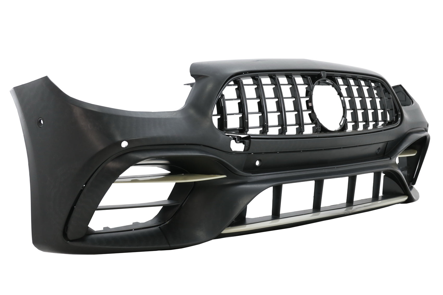 FrontstoßstangeFrontstoßstange mit zentralem Kühlergrill, PDC-Halterungen, zentralem unteren Kühlergrill, seitlichen Kühlergrills und glänzend schwarzen Zierleisten und Klappen.